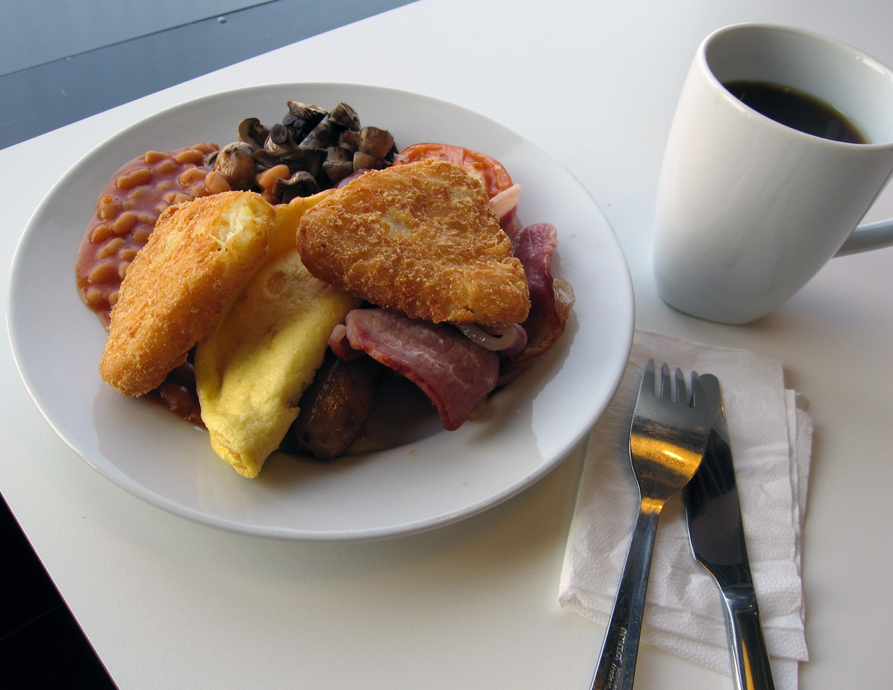 安くて旨い、イングリッシュブレックファースト では No.1だと思うのがコレ。 IKEA Southamptomで食べた、Breakfast 9 items with mushroom. オムレツ・ベイクドトマト・ベイクドビーン・ベーコン・ソーセージ・ハッシュドポテトの6品だと ikeaの無料会員価格で£1.5飲み物付。 ベーコン・ソーセージ・ハッシュドポテト が2つずつの9品で£2.25になり、さらにマッシュルームを追加すると£2.5(約374円)となります。 飲み物はお替り自由、飲み放題。 コーヒーの味はちとアレでしたが。 写真上と下は同じ店で別の日。盛り付け丁寧なオバチャンと、雑なニイチャン。 すぐ近くにマクドナルドもありますけど、この値段で、この旨さで、ゆったり広いレストランで、皿・ナイフ・フォークでって、絶対こっちのが得。 朝9時半~11時までの時間限定メニューです。無料WifiはBT、BTfonが使えました。